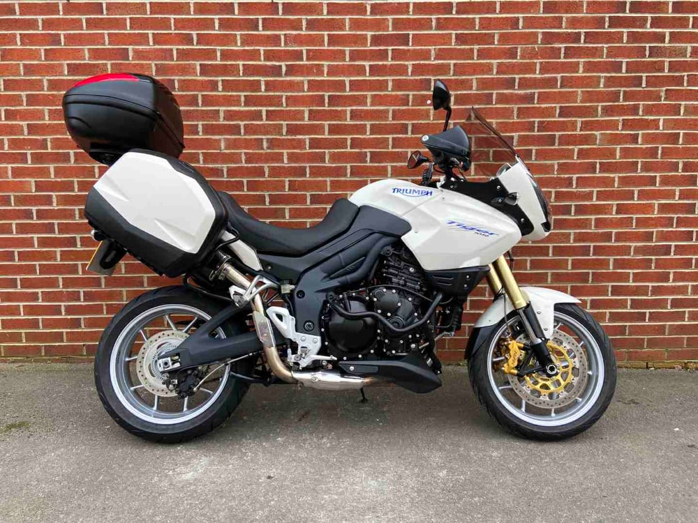 Great example of the ever-popular Triumph Tiger 1050 ABS model in white with Triumph colour-matched panniers and Givi top-box. Stonking 3-cylinder powerplant that Triumph are renowned for which delivers effortless torque across the rev range. Comfortable riding position for the longer journeys & practical elements such as; centre stand, Oxford heated grips & engine bars.. This bike is located at our Bridgwater branch, please contact a member of our sales team on 01278 457652 to arrange a viewing, test ride or for more details.. Riders House, Wylds Road, Bridgwater, Somerset, TA6 4DH.. Ducati Authorised Dealer. Indian Motorcycle authorised dealer. Harley-Davidson Specialist.. Finance options available, Extended warranties available on all of our new and used bikes. Nationwide delivery is also available.